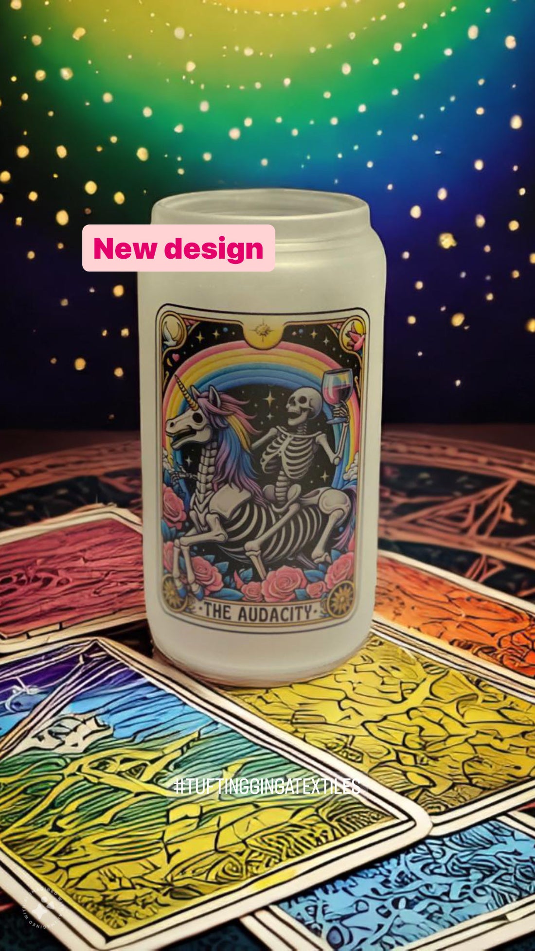 16oz drinking cans with Sublimated designs on frosted/white glass cans as well as a metal can option.
