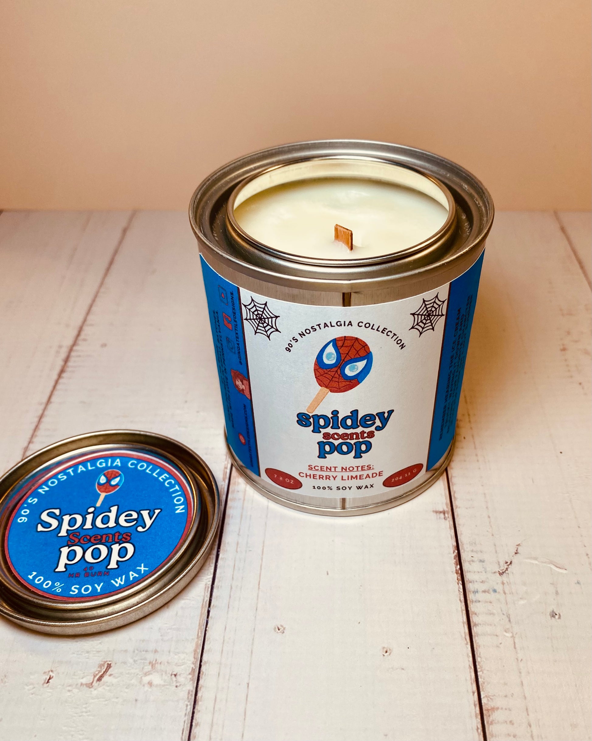 Experience the perfect blend of nostalgia and fun with our 90's Nostalgia Spidey Pop. This refreshing candle, featuring a cherry limeade scent, will transport you back to summers spent chasing the ice cream truck. Perfect for reliving the good old days.