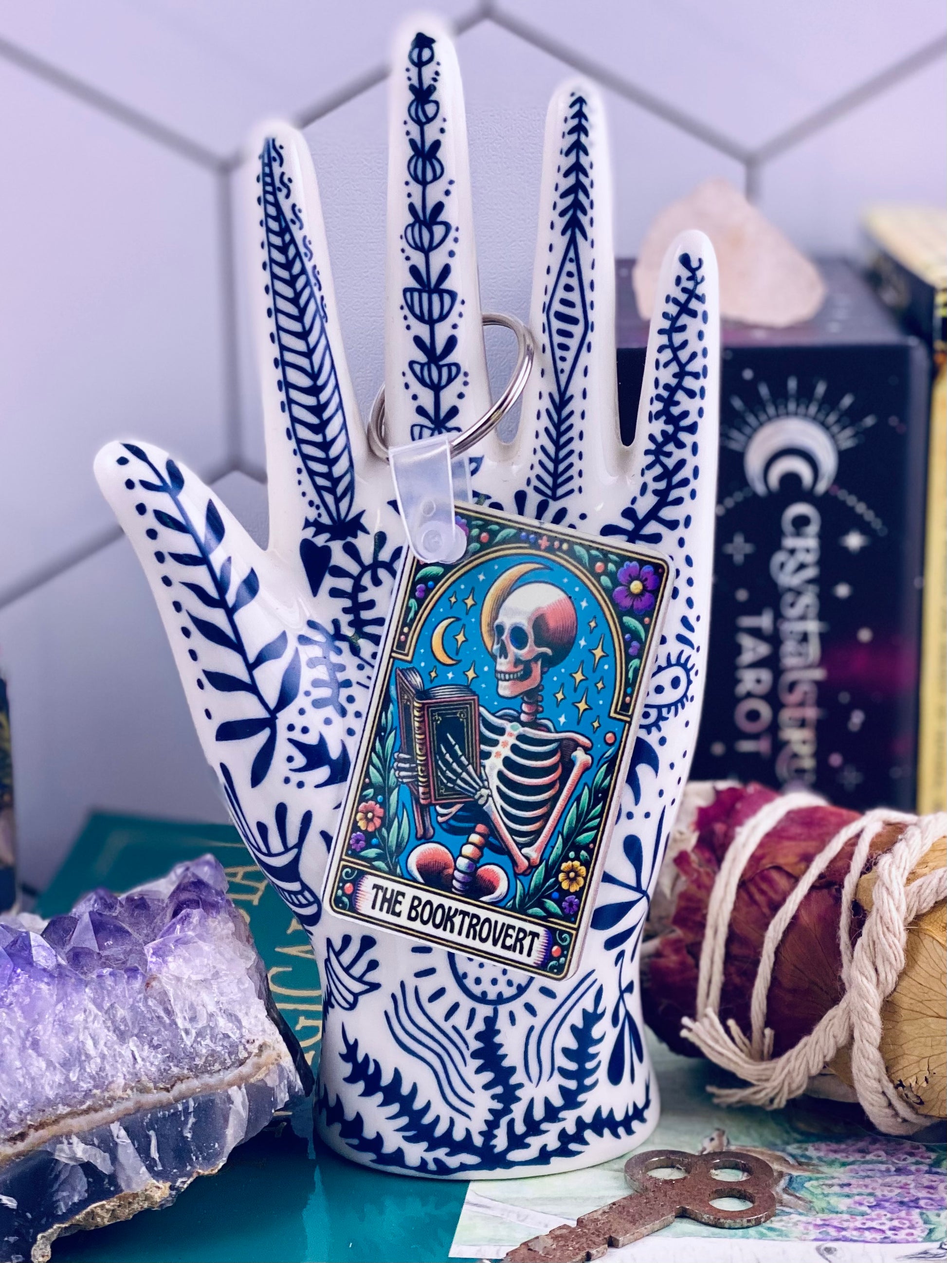Vibrant images of tarot cards sublimated by hand onto metal keychain blanks. Perfect keychain for any book lover.