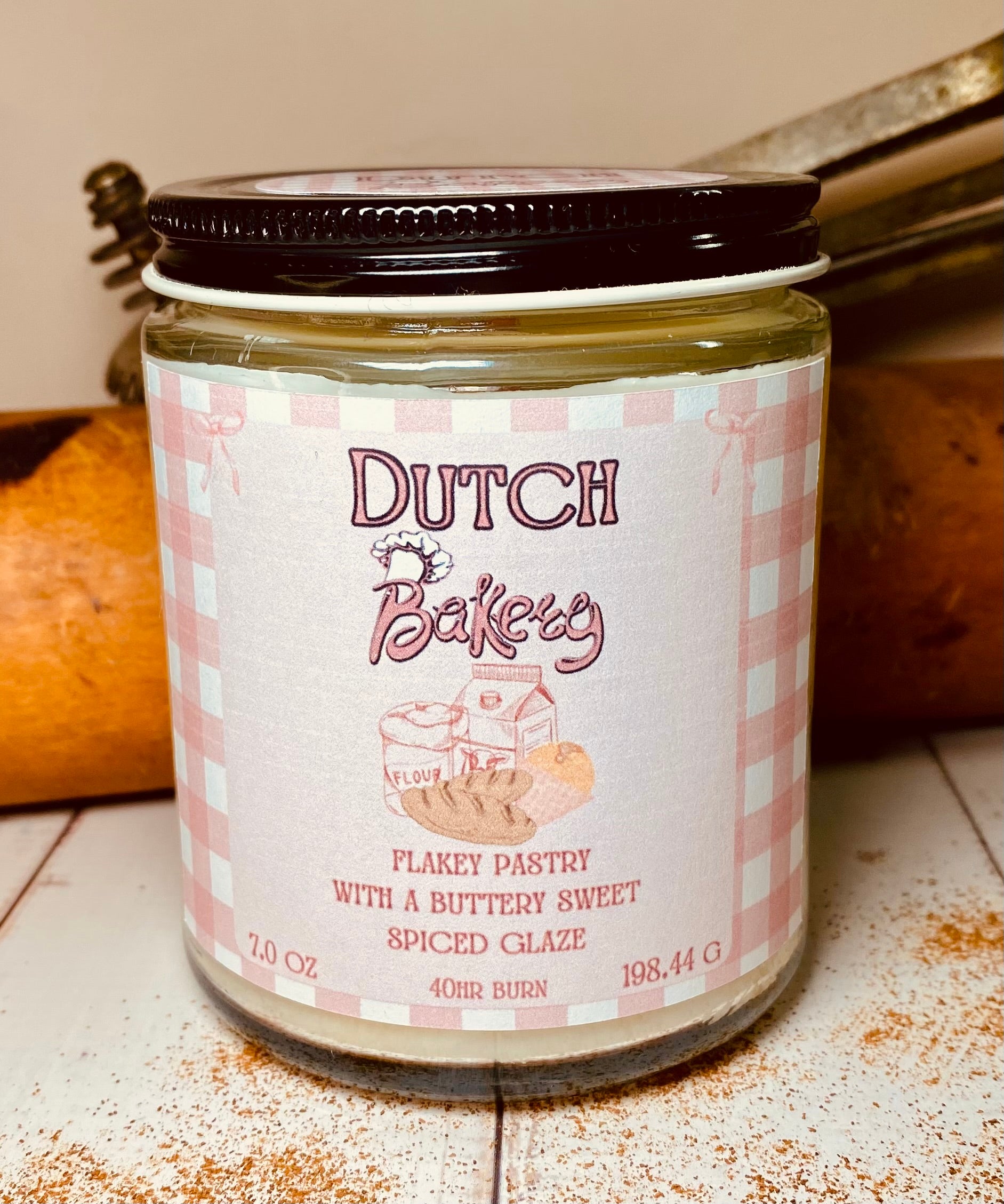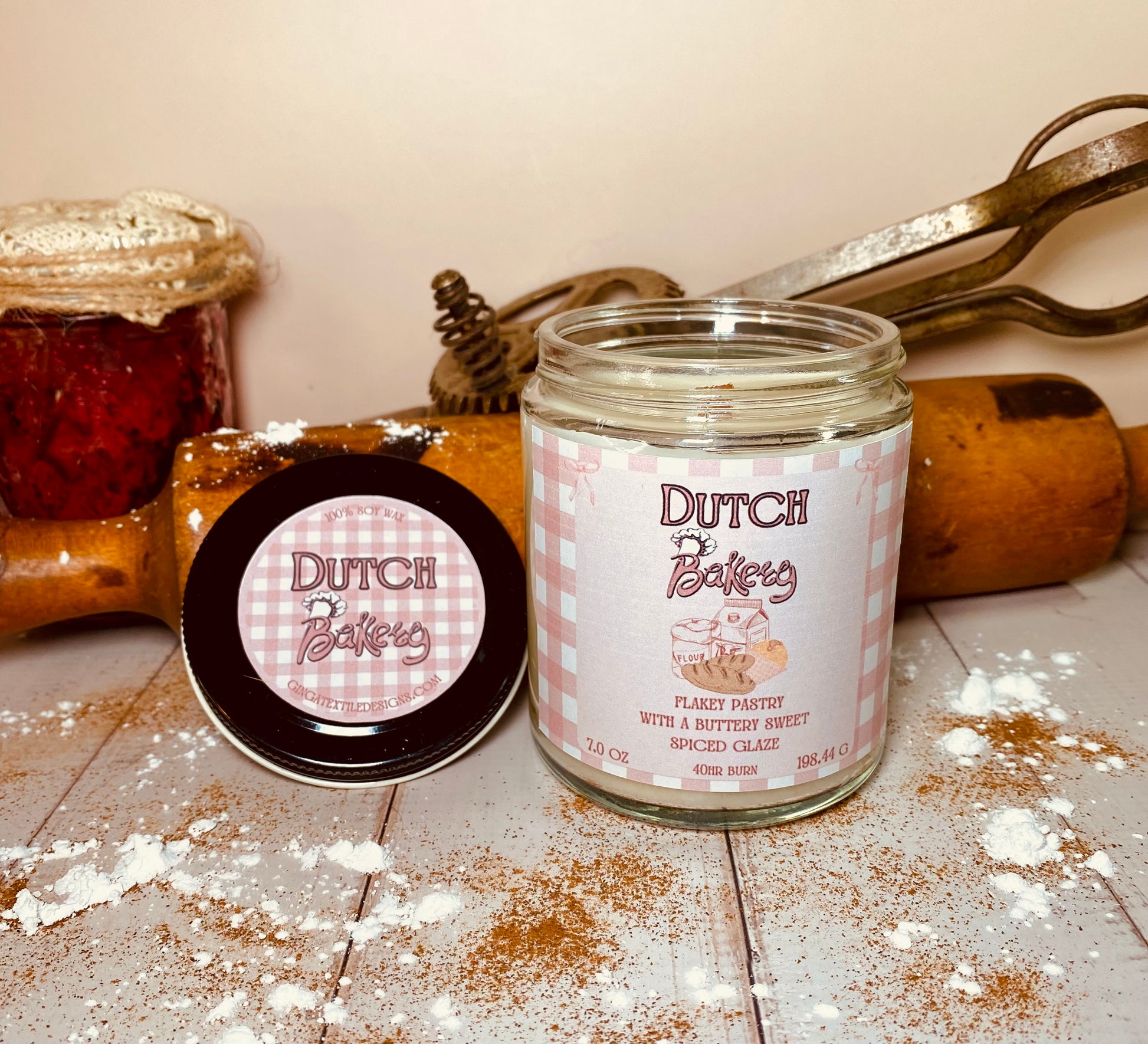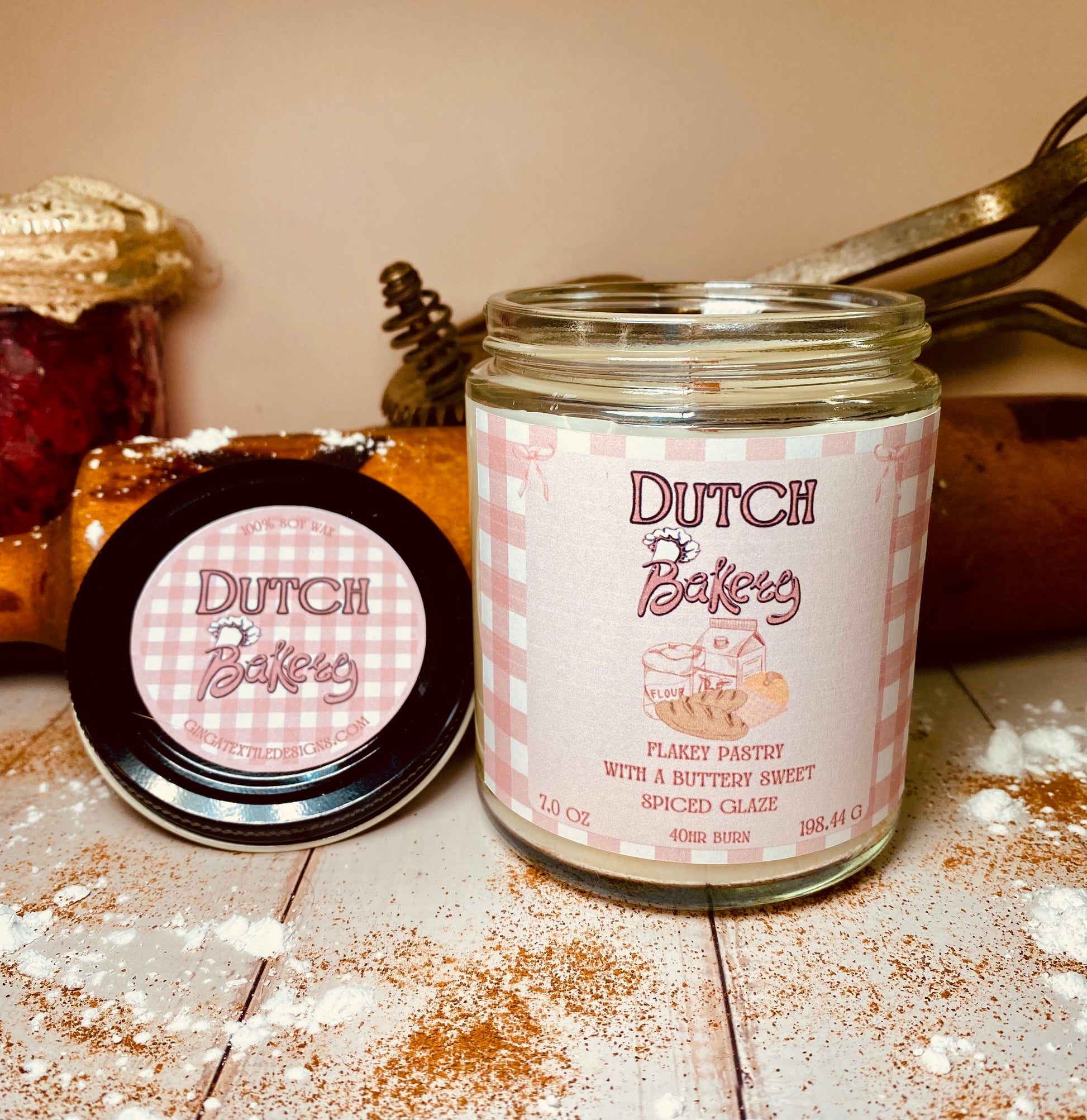 Experience the natural clean scent of Dutch Bakery. Hand poured in small batches, our candles feature wood wicks for a longer burn time and a cozy, crackling ambiance. Breathe in the benefits of nature with each burn.