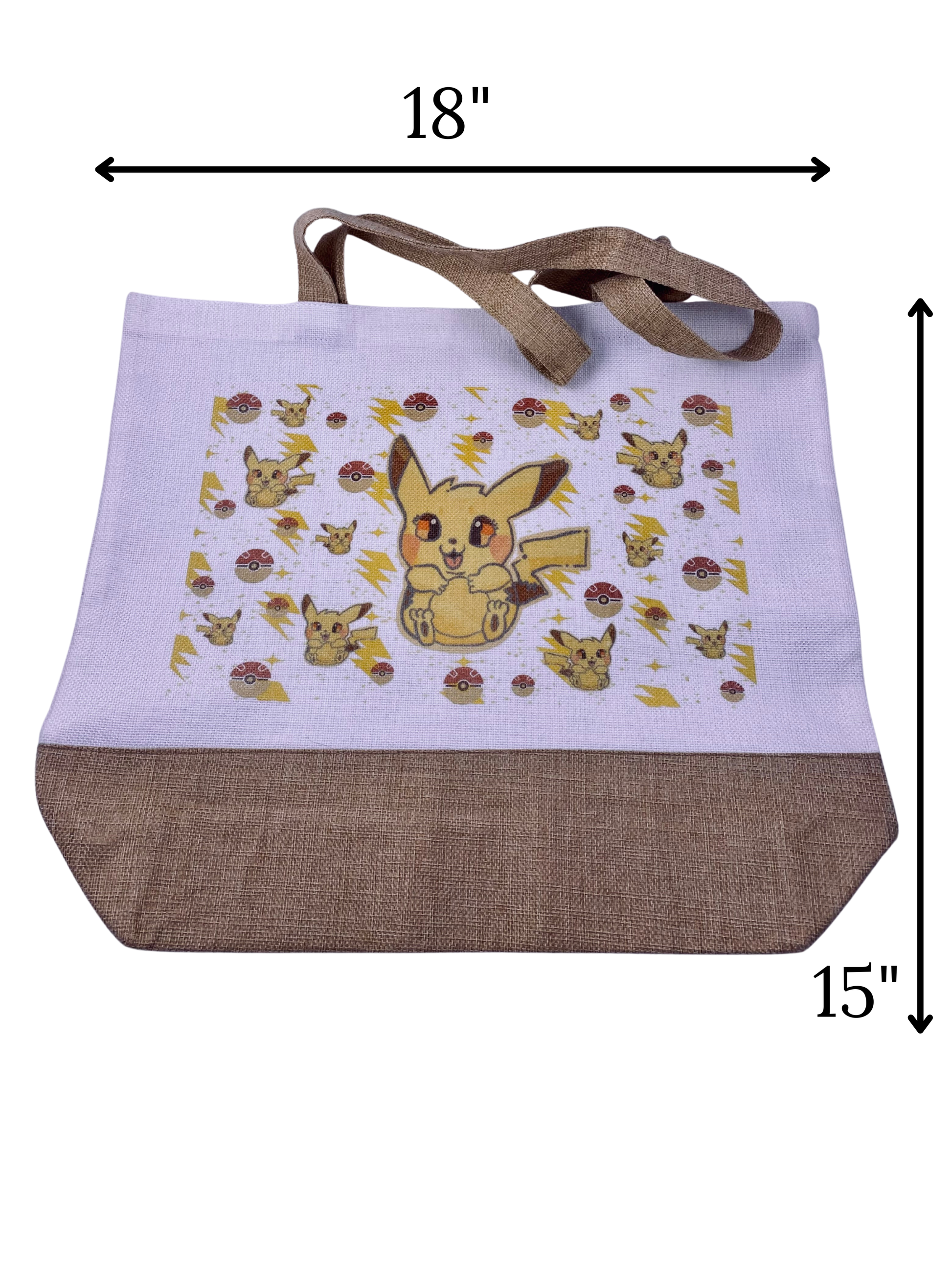 Expertly crafted from durable canvas, this sublimated tote bag is the perfect addition to your everyday routine. With its spacious interior, it's ideal for carrying groceries, books, electronics and more. Experience the convenience and style of this handmade tote bag. 18" long by 15" high. Double sided print. All designs are inspired by your favorite characters.