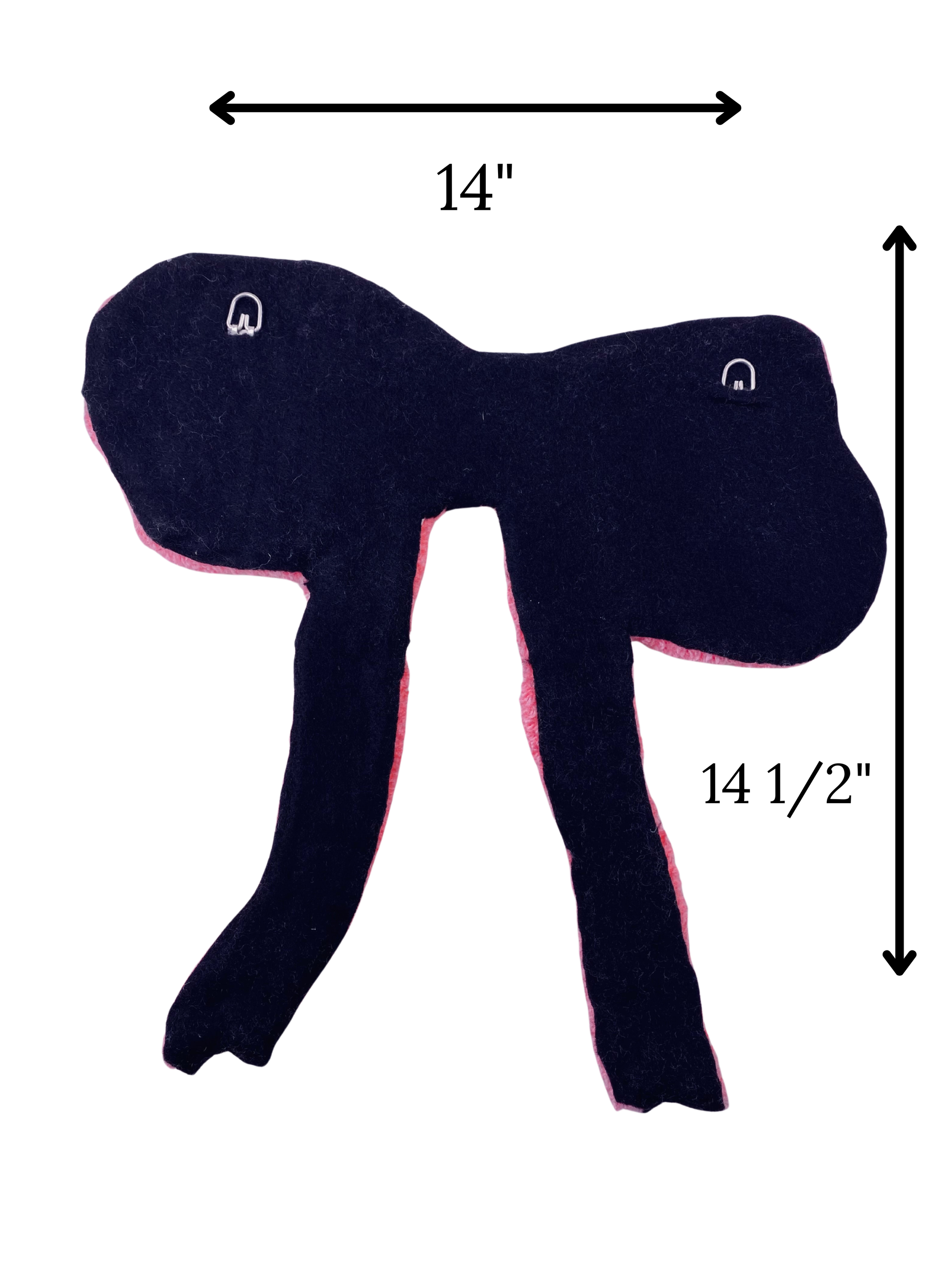 Pink Bow rug. Style your room or home with this pretty pink bow. Hand tufted, carved, glued and backed. Rug is made to hang on the wall. Size is 14 " High by 14 1/2" wide and a depth of 1" on the carpet cut pile. Rug comes with a d-rings on back for hanging.