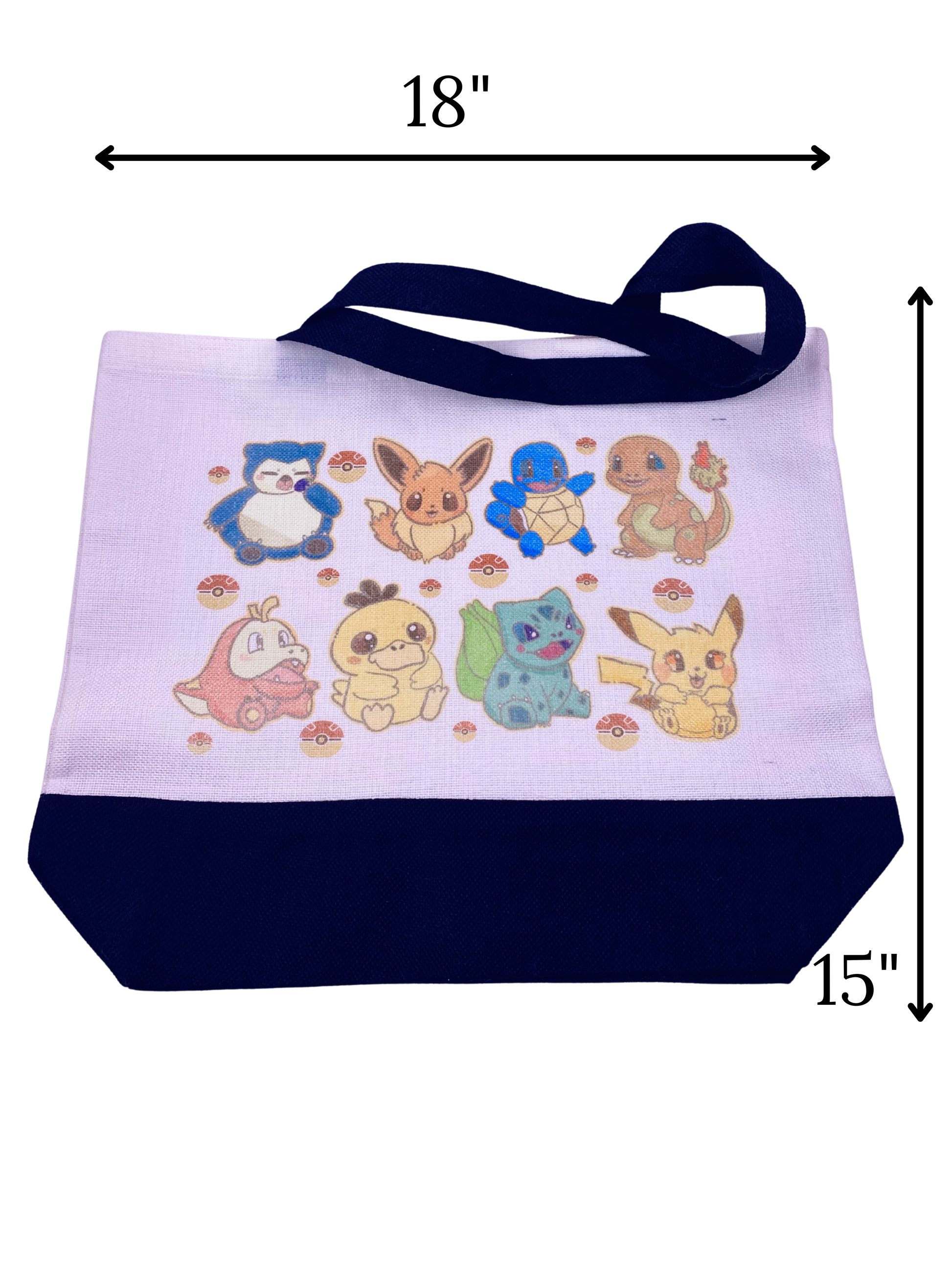 Expertly crafted from durable canvas, this sublimated tote bag is the perfect addition to your everyday routine. With its spacious interior, it's ideal for carrying groceries, books, electronics and more. Experience the convenience and style of this handmade tote bag. 18" long by 15" high. Double sided print. All designs are inspired by your favorite characters.